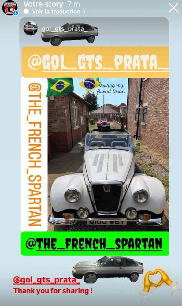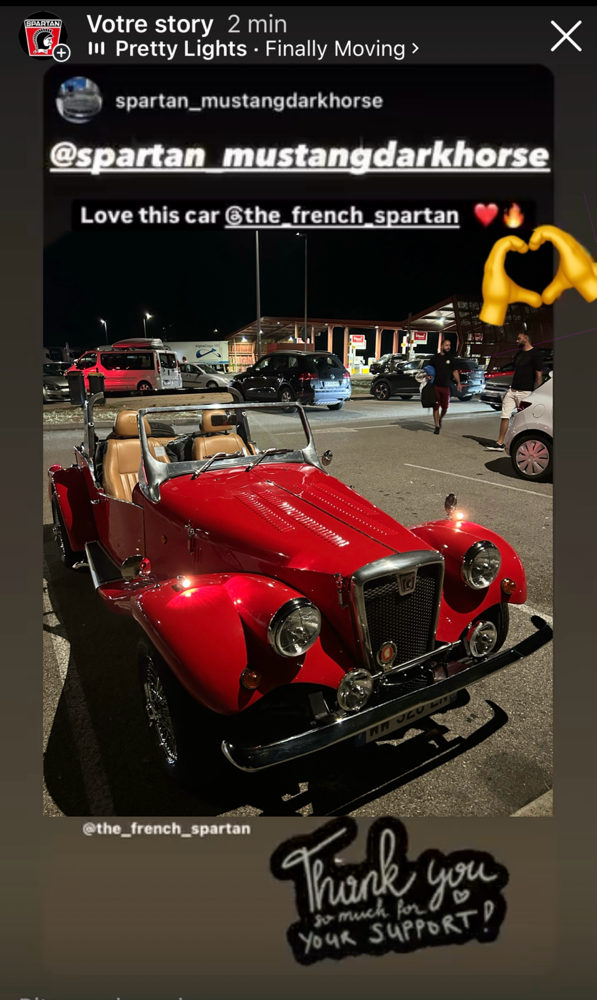 Thank you, members of the Spartan Owners Club, suppliers, and enthusiasts, sometimes on the other side of the world, like Raymond from Guadeloupe, for your messages of encouragement.